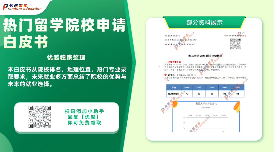 目前已經有英國院校開放了24fall申請,同學們是否還是對選擇哪所熱門留學院校感到迷茫呢?別擔心,這里有一份<利茲大學>申請白皮書,為你提供全方位的參考指南!本白皮書從院校排名,地理位置,熱門專業錄取要求,未來就業多方面總結了院校的優勢與未來的就業選擇。歡迎大家領取自查!