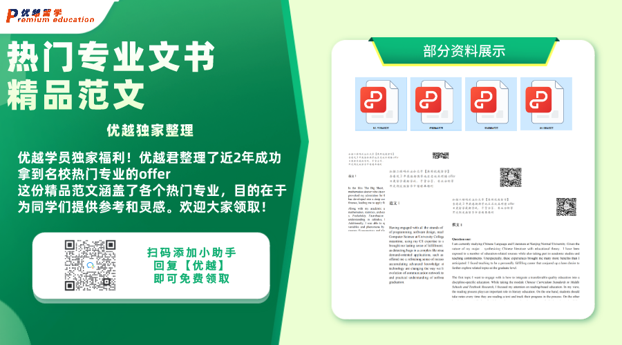 好消息是,優越學員有獨家福利!我們整理了近2年成功拿到名校熱門專業offer的精品范文,包括各個熱門專業。這些范文是根據近期成功申請者的實際案例整理的,符合現今院校的要求和期望。