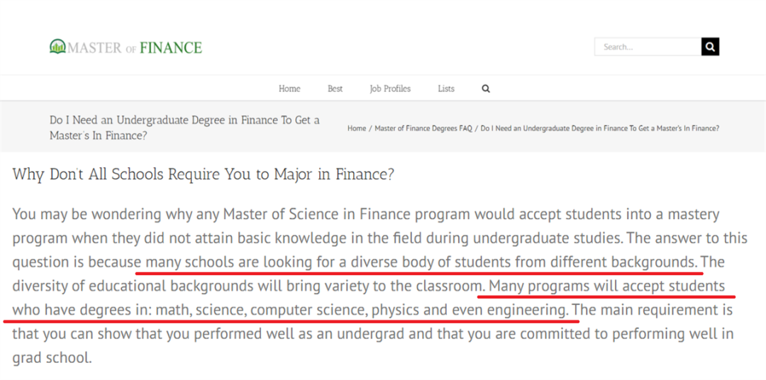 因此,對于一些頂尖大學而言,即使申請者在本科階段未主修金融課程,只要能根據申請要求向學校證明自己的學習能力,仍然有可能獲得金融碩士的錄取機會。
