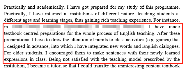 X同學在大學期間先后進行了7段英語或教學相關實踐,或長或短,每一段都是難忘的經歷。優越文書老師在和X同學溝通下來后,最后我們將“高光”只打在了兩段實習中:分別是初中英語教學和高中英語教學。這兩段經歷著重在PS中講述,其他實踐項目在CV中一帶而過。