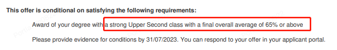 從我們收到的offer來(lái)看,計(jì)算機(jī)等工科類(lèi)以及大部分商科專(zhuān)業(yè)對(duì)西郊利物浦同學(xué)的offer條件是2:1學(xué)位以上。個(gè)別熱門(mén)的金融類(lèi)專(zhuān)業(yè)則要求2:1學(xué)位,均分65%以上,例如Finance and Investment MSc、MSc Accounting and Finance。