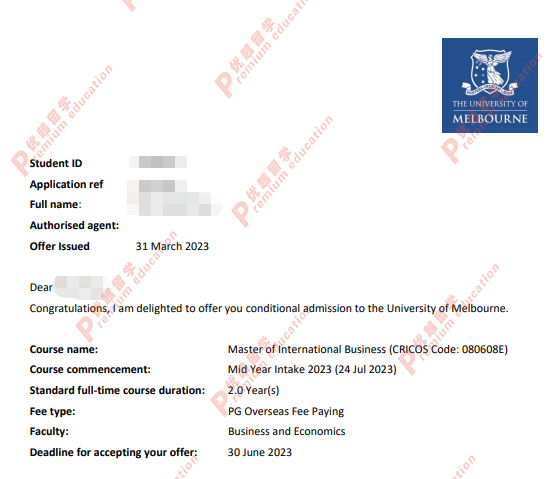 offer情況:墨爾本大學(xué)國(guó)際商業(yè)碩士
