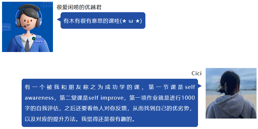 其實(shí)我也是個(gè)宅女,一個(gè)人處在陌生的社交環(huán)境也會(huì)很不舒服,但我會(huì)鼓起勇氣打開(kāi)話(huà)題。小組討論的時(shí)候,我也會(huì)在leader和organizer這兩個(gè)角色之間橫跳——你也不知道這句話(huà)的語(yǔ)法對(duì)不對(duì)、發(fā)音好不好,但別糾結(jié)了,先張口去說(shuō),大膽講話(huà)。