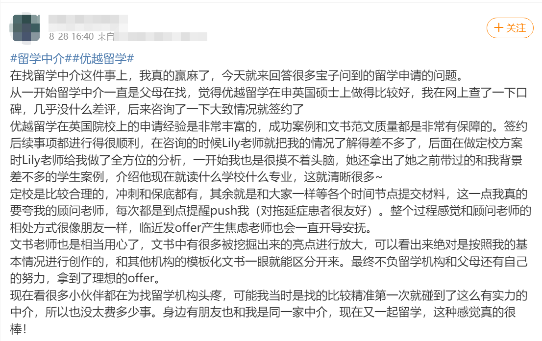 優(yōu)越留學(xué)學(xué)員評(píng)價(jià):
