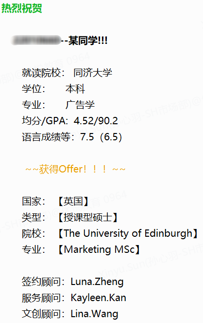 優越留學有成功留學愛丁堡大學的案例,感興趣的同學可以點擊鏈接了解詳細申請過程:
