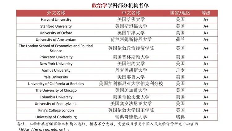 而論到人文社會科學學科的綜合競爭力,除了哈佛、斯坦福、加州伯利克等,還有芝加哥大學、賓夕法尼亞大學、多倫多大學、東京大學、劍橋大學、紐約大學、哥倫比亞大學等高校位居前列。