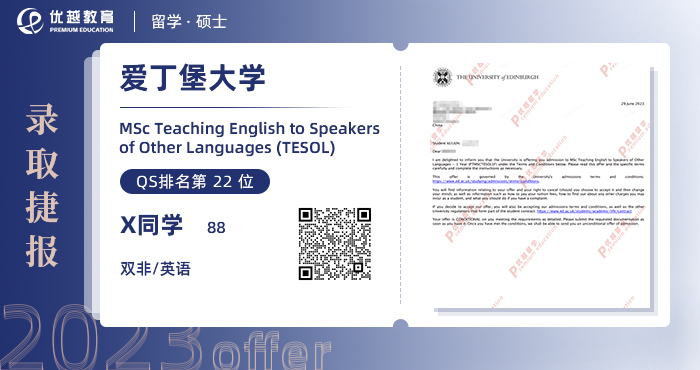 被采訪的X同學(xué):在整個申請過程中,優(yōu)越留學(xué)機構(gòu)發(fā)揮了至關(guān)重要的作用。他們提供了專業(yè)的指導(dǎo)和支持,幫助我制定了合適的留學(xué)規(guī)劃,選擇了最適合我的課程和大學(xué)。優(yōu)越顧問老師第一次和我溝通時,我還并不清楚英語專業(yè)可以申請英國大學(xué)哪些專業(yè),以為只能選擇語言研究類的方向。但是我打算未來從事教職工作,因此優(yōu)越顧問老師為我推薦了愛大的TESOL,理由和我個人的職業(yè)目標(biāo)更契合,而且申到好學(xué)校的幾率筆記高,顧問老師還給我講解了各個學(xué)校的TESOL課程,發(fā)現(xiàn)這類課程更吸引我,很感謝我的顧問老師,讓我成功地申請到了心儀的大學(xué),心儀的專業(yè)~