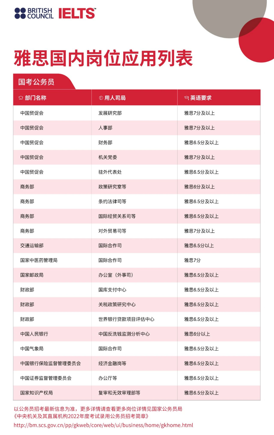 又比如,考公大隊伍中的"高富帥"崗位,雅思要求也不落其后往7.0以上跑,部分如下