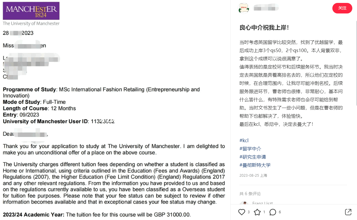 文書方面,學生對優(yōu)越留學的文書寫作能力給予高度評價。他們認為文書團隊精通英語,能夠編寫出流暢、準確且有吸引力的申請文書,有助于提高申請成功率。通過優(yōu)越留學成功獲得了入學通知書,并在理想的學校和專業(yè)中實現(xiàn)了自己的留學夢想的同學給予的好評最多,這些成功案例也進一步增強了其他學生對優(yōu)越留學的信任和好評。
