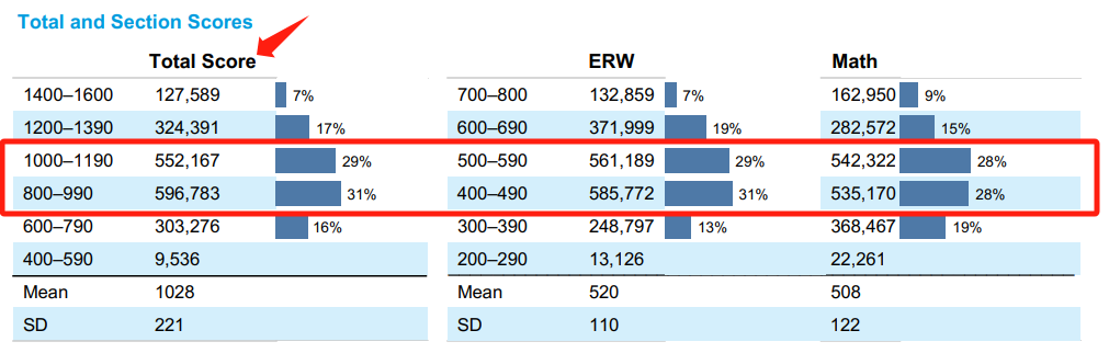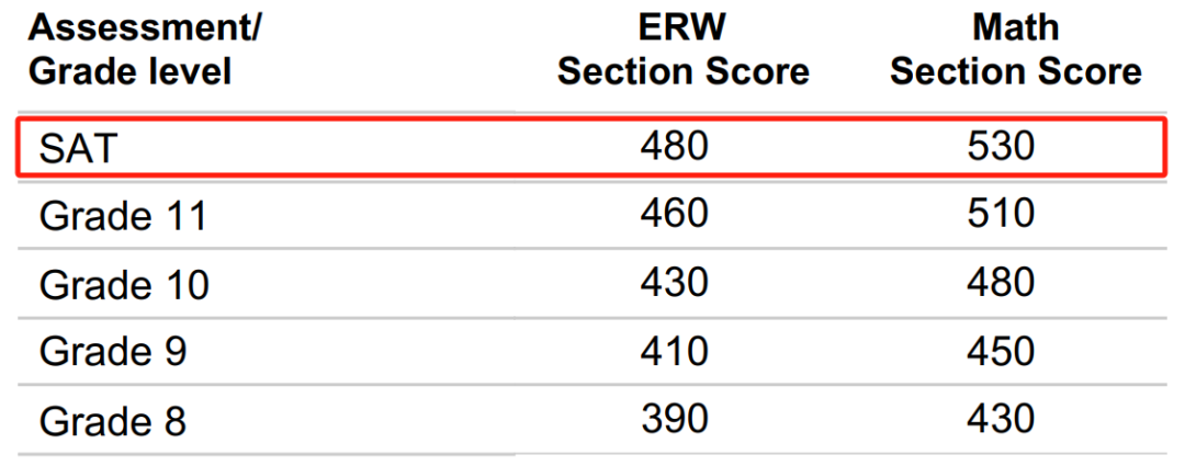 2022年ERW基準(zhǔn)線480分,MATH為530分;