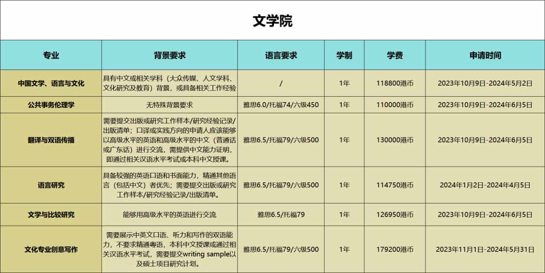 中國文學(xué)、語言與文化等專業(yè)在香港浸會(huì)大學(xué)文學(xué)院非常熱門,特別是由于不需要提供語言成績,吸引了許多考公務(wù)員熱門的學(xué)生。不過,申請這些專業(yè)的學(xué)生最好具備相關(guān)的背景,例如漢語言文學(xué)或漢語國際教育等本科背景,這將增加您的申請競爭力。即使您擁有強(qiáng)大的背景,如果沒有相關(guān)領(lǐng)域的學(xué)術(shù)基礎(chǔ),也有可能面臨被拒絕的風(fēng)險(xiǎn)。