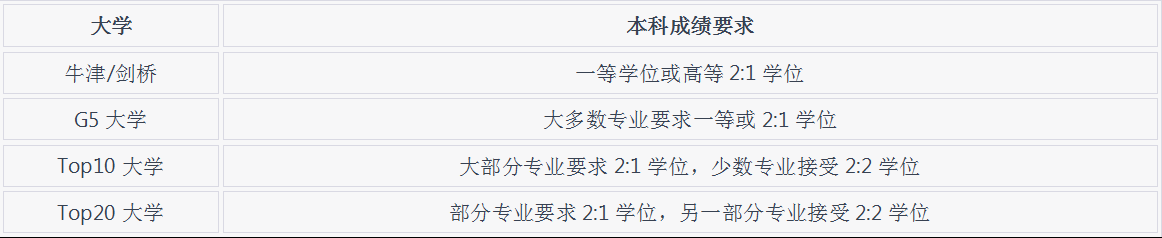 以下是一些英國頂尖大學對于英國本科成績的一般要求的概括: