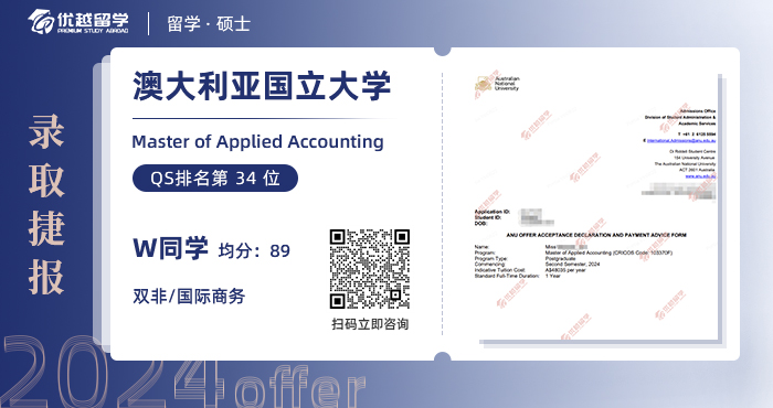 最終,這位學生憑借出色的學術(shù)成績和優(yōu)越的申請材料成功獲得了澳洲國立大學Master of Applied Accounting的錄取。