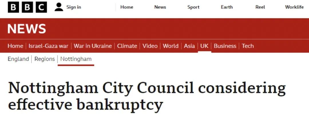 諾丁漢市政近日傳出破產危機,議會正在考慮發布114Notice:城市運作現在處于極其困難的時期,若實在無法平衡預算,走投無路就只能“宣布破產。