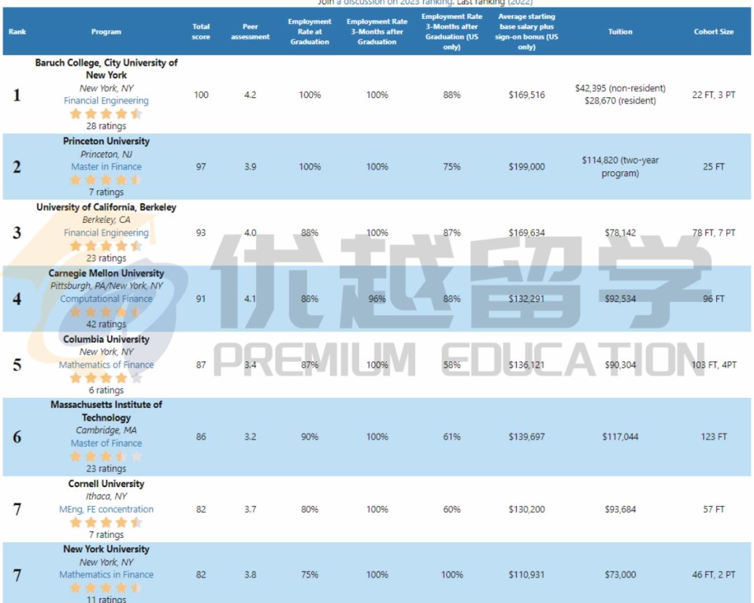 如果說這幾年有長盛不衰的熱門專業,金融工程就是熱門中的熱門,難申中的難申。首先金工program本來開的就很少,Top150的學校大概只有50個金融工程的program,今年來到優越留學咨詢金工申請的同學卻比往年要多,看來今年金工的熱度只增不減啊。