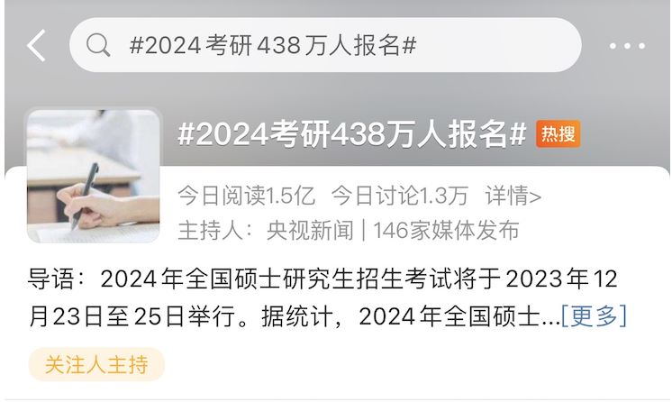 不過對于想申985/211名校碩士的同學(xué)來說,這減少的36萬恐怕還是杯水車薪。要知道近幾年名校考研錄取率普遍不超過20%,重本報錄比10:1是家常便飯,很多人為了“防卷”甚至選擇了“逆向考研”(從985/211/雙一流院校考研雙非院校)......
