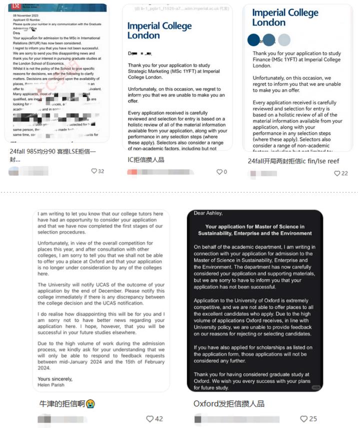 不過,對于申牛劍、IC、LSE、藤校的同學(xué)來說:熱鬧是他們的,我還在苦苦等待。這幾所學(xué)校一向“高冷”,有時候沒有消息也是好消息。因為很有可能喜提一封拒信,而這些學(xué)校往往都是大家最向往的夢校(心碎)......