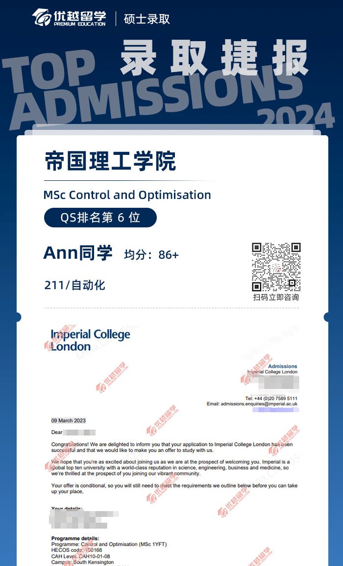 其實我真的覺得很幸運,IC、曼大都給我發了offer,雖然IC最后沒去成,均分條件就差1分(還拒了我的argue...)不過總而言之,整個過程還是挺順利的,因為我整個過程真的已經非常努力,最后均分是達到我本科那個專業能給的分數頂端,所以沒有什么遺憾。也希望我得學弟學妹,能找到幫扶你的優秀機構,申請季順利收官,拿夢校offer!!
