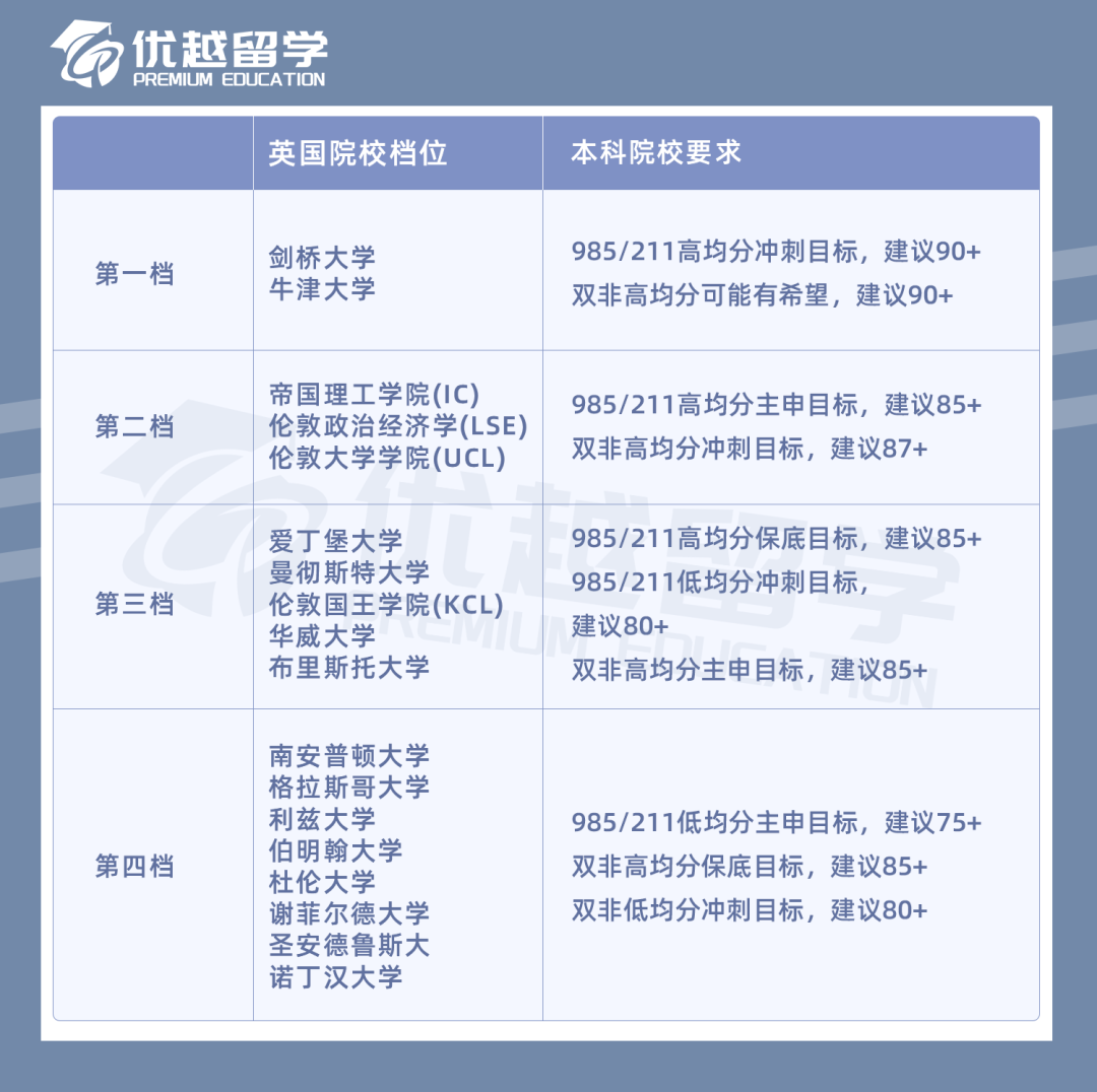 前幾天,有同學(xué)找到優(yōu)越君,說自己在了解英國院校留學(xué)要求的時(shí)候,無意中發(fā)現(xiàn)了這張表格。該同學(xué)迫切想知道:雙非留英,真的這么難嗎?