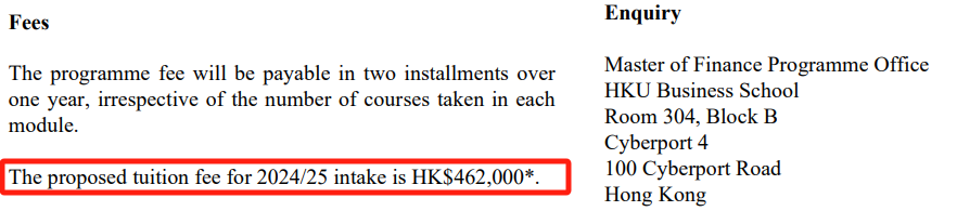 24fall商學(xué)院的最低學(xué)費為36萬港幣,最貴為金融學(xué)&金融科技學(xué),學(xué)費達46.2萬港幣(約合人民幣42.4萬),而去年除去MBA,商學(xué)院最貴也才37萬港幣左右...