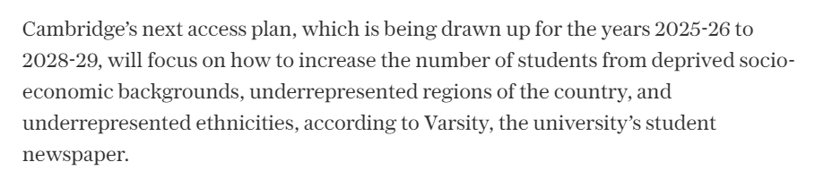 根據劍橋大學獨立報紙Varsity首發訊息,劍橋大學將取消公立學校的本科招生指標,并已經著手制定2025-26學年至2028-29學年的入學計劃。