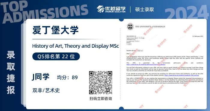 其實J同學的本科院校是不在愛大的list內的,但是Sharon老師根據歷年帶學生的經驗判斷,在愛大執行list之前,以J學姐的條件是能夠申請到的,直接把排名拉升到了QS30內。
