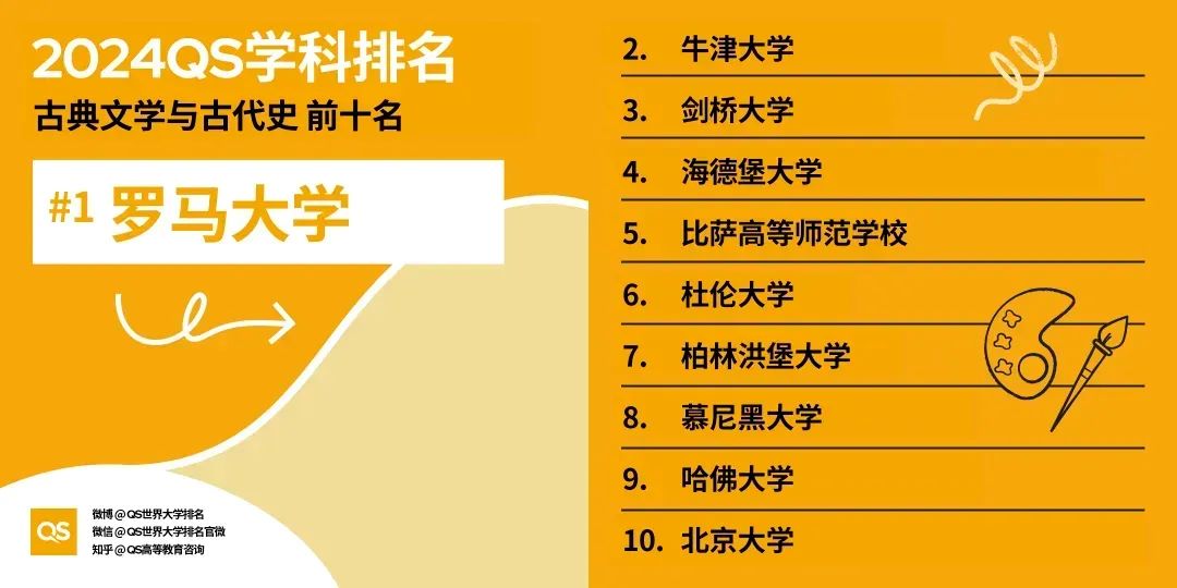 2024年度人文與藝術(shù)專業(yè)TOP10依然被英美高校霸榜,美國就占據(jù)了其中的7個(gè)名額。值得一提的是,今年哈佛大學(xué)超越了牛津和斯坦福,拿下了榜首。下面是人文與藝術(shù)領(lǐng)域各專業(yè)具體的學(xué)科排名↓↓↓