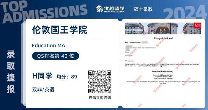 H學姐是去年5月找到優越顧問老師,開啟英國碩士研究生申請。用時6個月的時間,最終跨申上岸KCL教育學專業。接下來,就跟優越君一起看看,H學姐做了哪些跨申準備,最終得到“王”的青睞的吧~