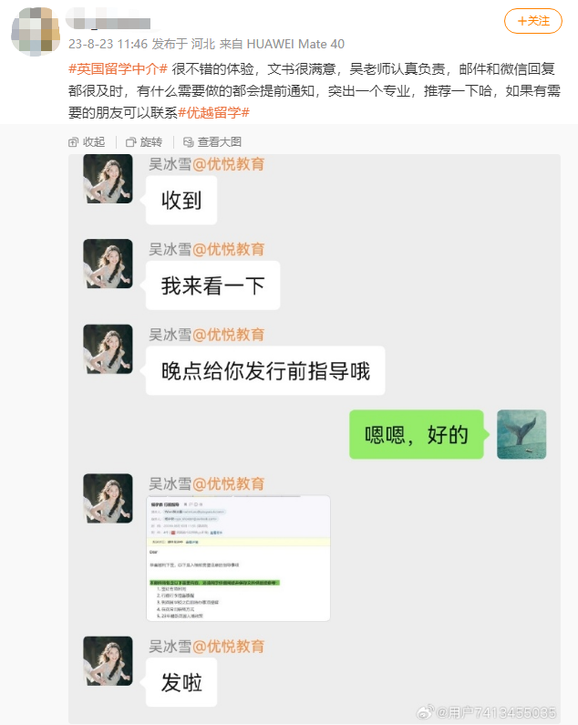 在此,優越留學的小編要自豪地曬一下我們的好評了。一直以來,我們都致力于為學生提供專業、貼心的留學服務,贏得了眾多學生和家長的信賴和好評。如果您正在為留學英國而煩惱,不妨來優越留學咨詢一下,我們一定會為您的留學之路保駕護航!