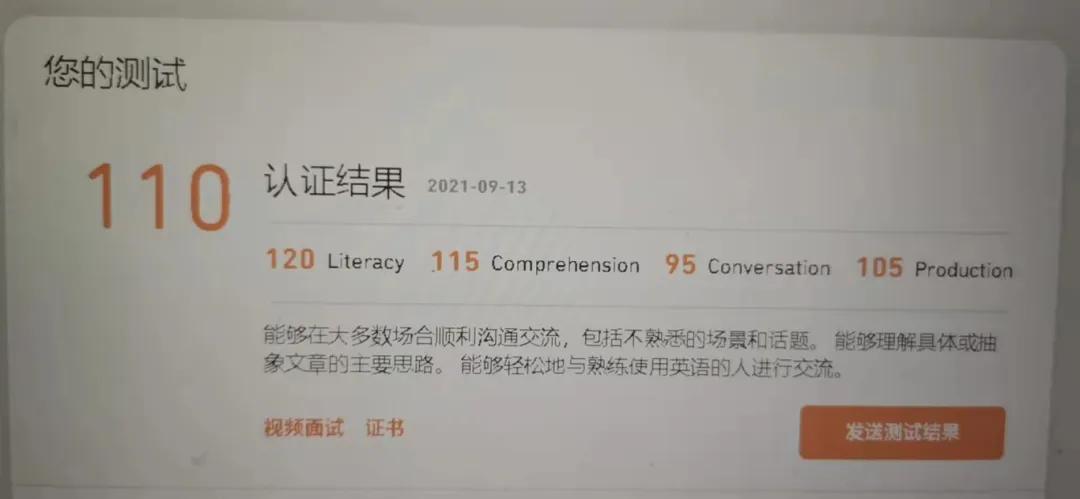語言情況:自學雅思六考不中,找到優越咨詢后轉考多鄰國,報1V1半個月后出分110(95)。
