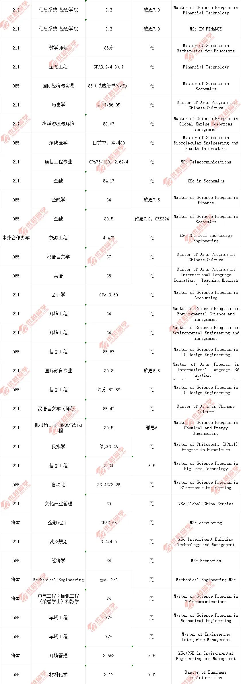 院校偏好:香港大學(xué)商科類比較少接受雙非院校的申請,除非你條件非常的優(yōu)秀,工作履歷足夠打動招生官,一般有拿到offer的學(xué)生大部分是海本,211或者985院校畢業(yè)的學(xué)生。