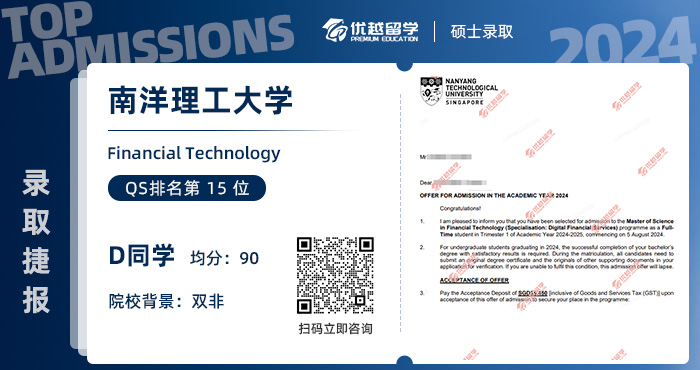 錄取院校:南洋理工大學——金融科技專業