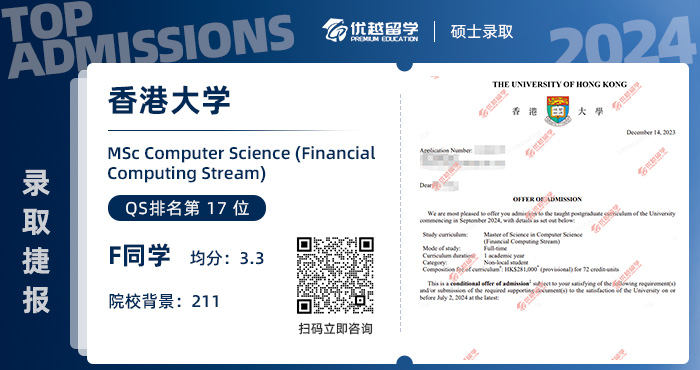 以上是【【香港留學】工作10年重啟留學,港大CS碩士是最好的選擇】相關的全部內容,查看更多【名校案例】相關資訊可前往【優越留學】首頁!詳細申請規劃及方案定制請預約優越留學顧問為你一對一解答!