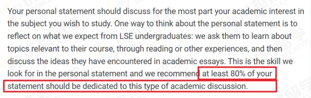 LSE官網(wǎng)明確表示,在文書PS中,至少80%的內(nèi)容都應(yīng)該專門用于這種類型的學(xué)術(shù)討論。