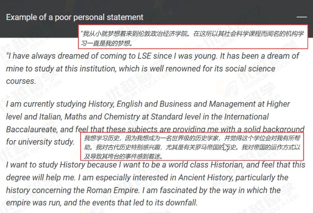 倫敦政經(jīng)非常討厭長(zhǎng)篇大論講跟所申專業(yè)無關(guān)的內(nèi)容,官網(wǎng)甚至po出了糟糕的文書示例??