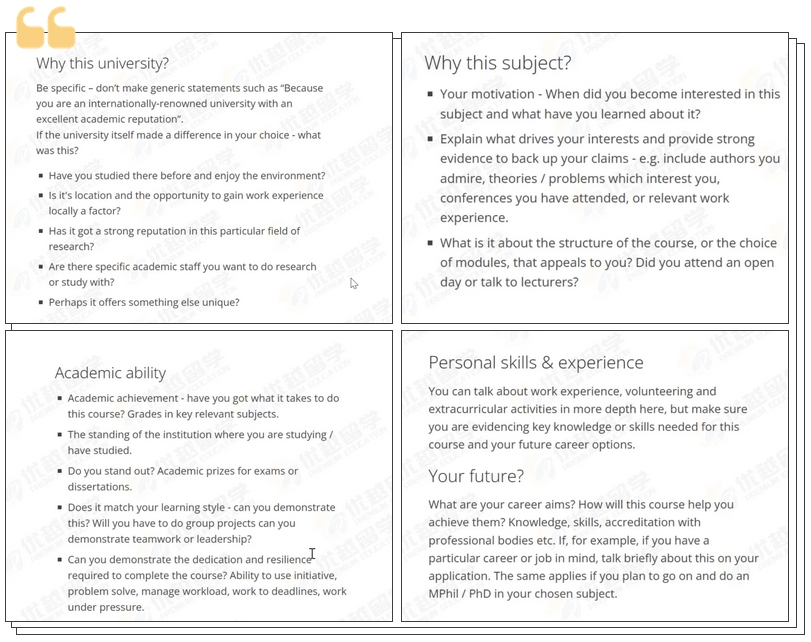 以上是【【申請(qǐng)文書】英國哪幾所大學(xué)最看重申請(qǐng)文書?踩中“雷點(diǎn)”直接一眼拒!】相關(guān)的全部?jī)?nèi)容,查看更多【 英國碩士文書】相關(guān)資訊可前往【優(yōu)越留學(xué)】首頁!詳細(xì)申請(qǐng)規(guī)劃及方案定制請(qǐng)預(yù)約優(yōu)越留學(xué)顧問為你一對(duì)一解答!