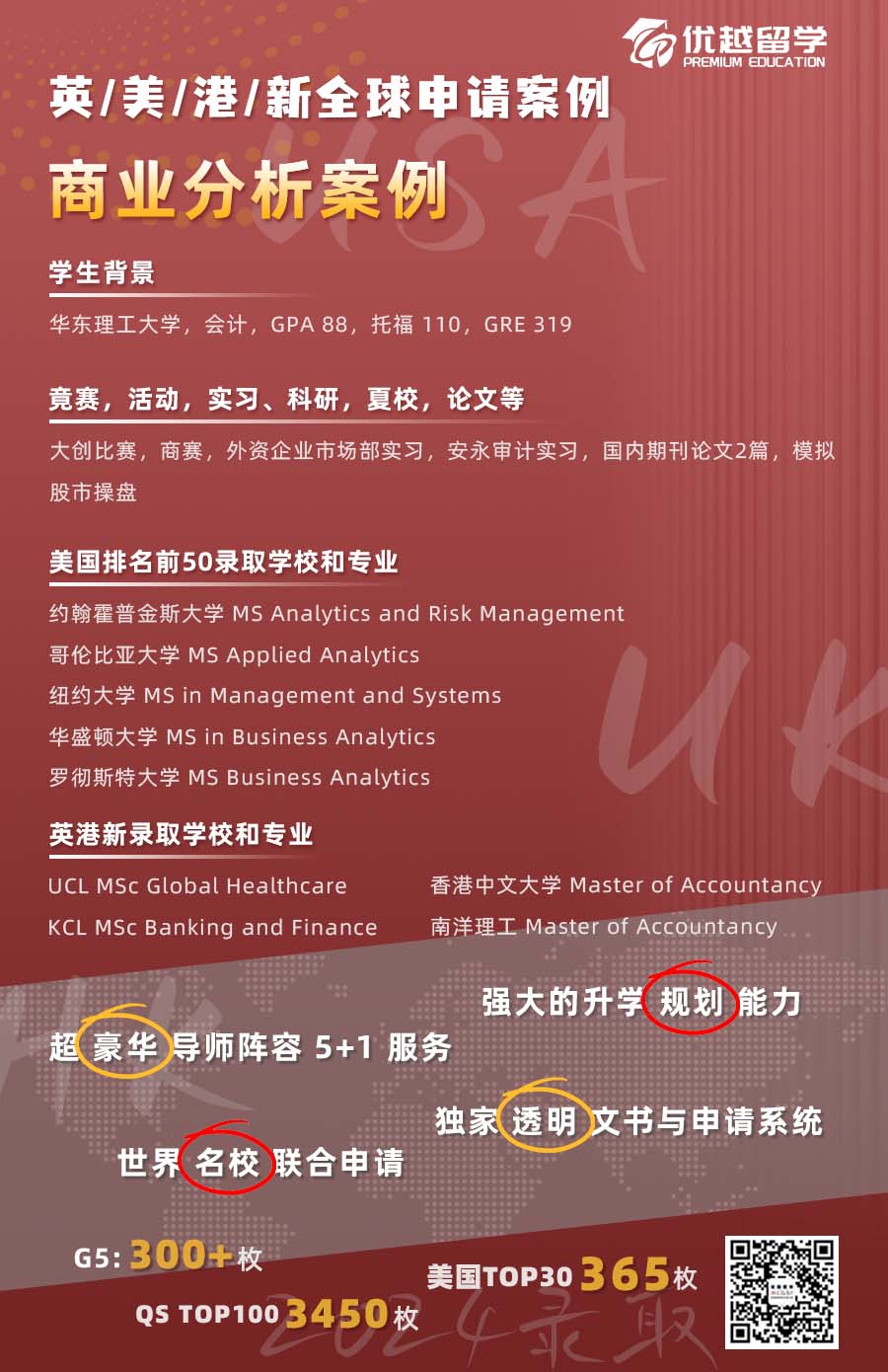 以上是【【多國聯申】211會計生,橫掃美國top20、英國G5、港三新二大滿貫!】相關的全部內容,查看更多【名校案例】相關資訊可前往【優越留學】首頁!詳細申請規劃及方案定制請預約優越留學顧問為你一對一解答!
