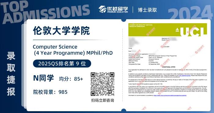 N學(xué)長(zhǎng)是通過朋友推薦來到優(yōu)越的,雙非背景,如愿拿下G5 中UCL的計(jì)算機(jī)科學(xué)PhD博士offer!