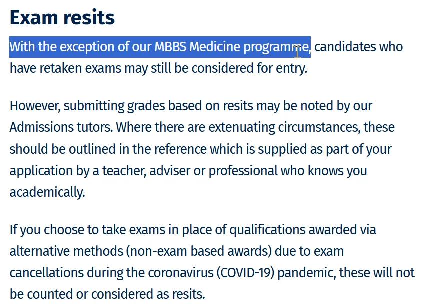 去年12月帝國理工進行了更新,此次表示除了醫學專業,其他專業重考申請可能會被考慮。