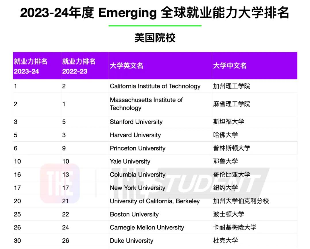 “哈耶普斯麻”中,除了最“文科”的耶魯不在前5以外,其他4所大學,再加一所《生活大爆炸》里的“理工神校”加州理工學院,組成了美國就業力最強的TOP5大學。