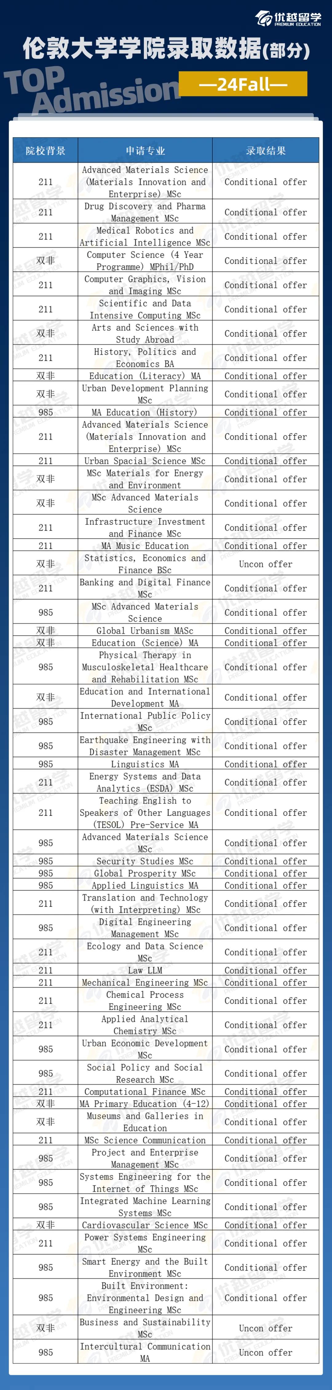 UCL不僅對(duì)海本陸本一視同仁,而且在G5里算是對(duì)雙非背景院校比較友好的學(xué)校。
