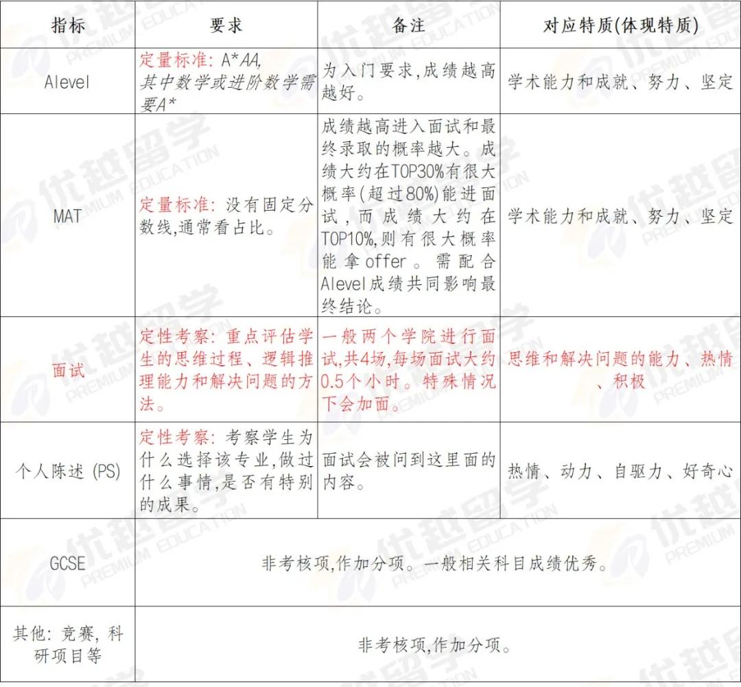 *以計算機學科為例,牛劍申請考察標準及特質體現