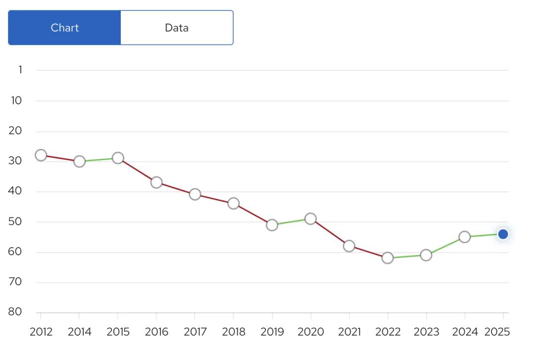 前幾年下降的趨勢,總讓人擔心它時刻會跌出前百。按現在的趨勢,大可不必擔心。