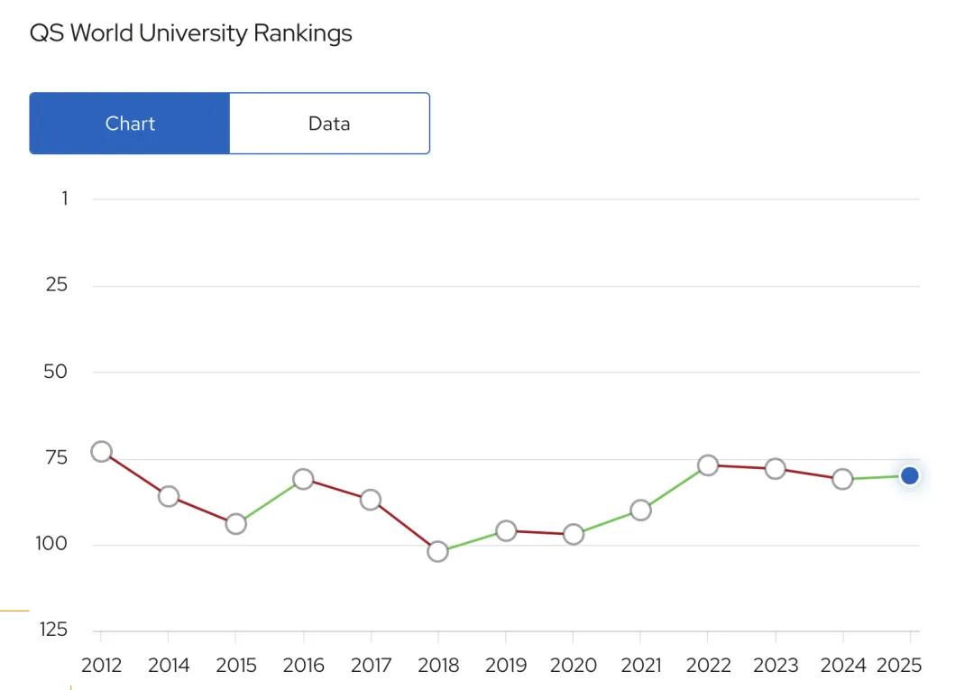 要知道,利茲大學之前在試探100的底線?,F在就不一樣了,連續好幾年排名飆升,即便今年下降了7名,排名也還是穩在82,可太穩了!