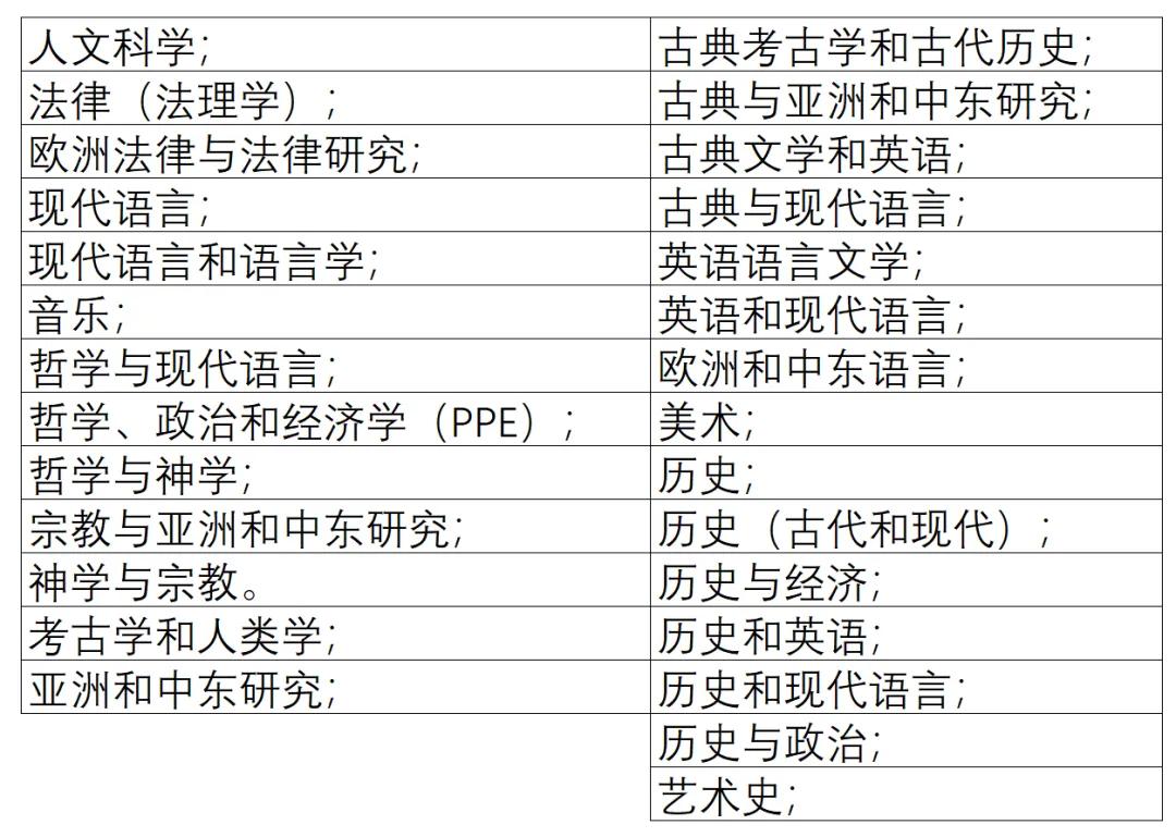 牛津大學(xué)28個(gè)專業(yè)最低要求是AAA,主要是偏人文一類專業(yè),例如歷史、法學(xué)、考古學(xué)、人類學(xué)等。