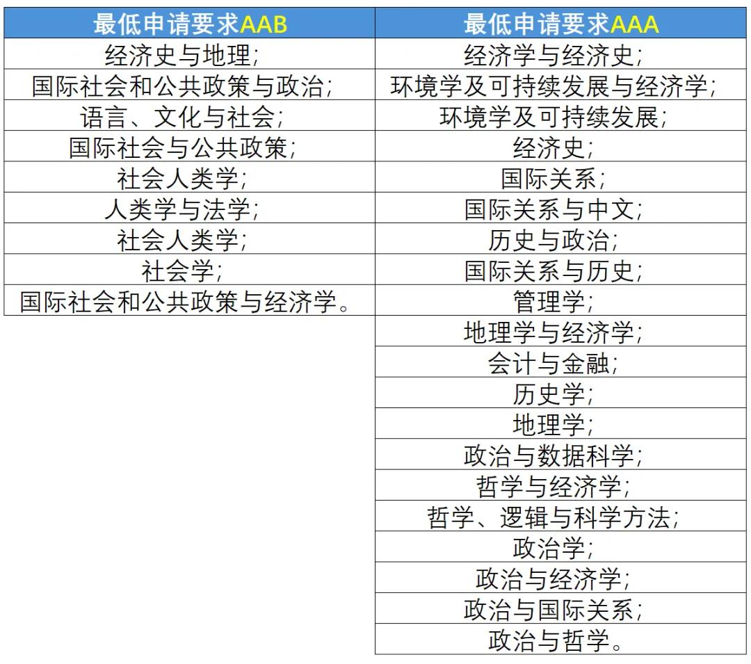 社會(huì)歷史學(xué)院:人類學(xué)、考古學(xué)、藝術(shù)史等均AAB或ABB即可申請,等等。