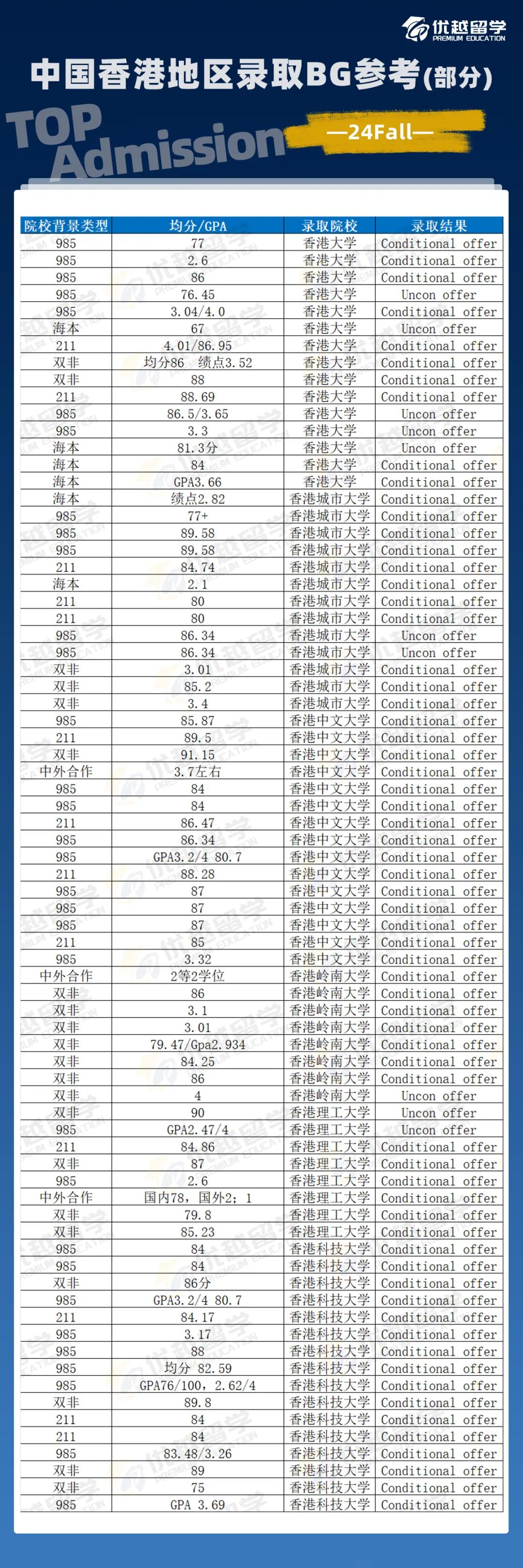 為了讓大家更好地了解港校的錄取偏好,優(yōu)越君截取了部分24Fall的BG和錄取結果,以供大家參考?
