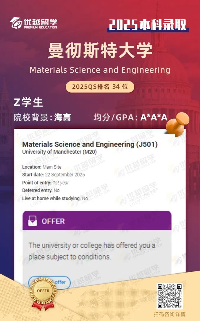 以上是【【本科案例】王愛曼華本科offer再添一枚:數物化錄取曼大MSE專業】相關的全部內容,查看更多【 本科留學申請】相關資訊可前往【優越留學】首頁!詳細申請規劃及方案定制請預約優越留學顧問為你一對一解答!