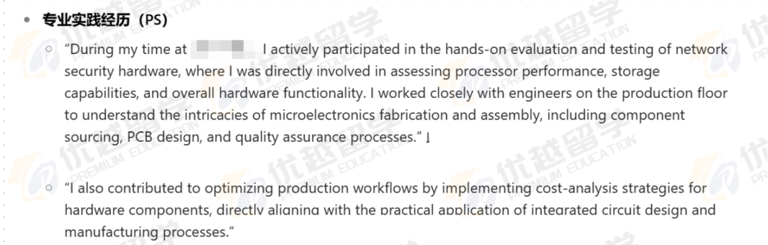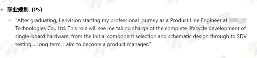 由于NTU還是比較注重職業規劃的,因此,在文書上的職業規劃中,我們明確將職業從短期的硬件工程師到長期的產品經理規劃到位,表明其對專業技能提升的持續追求和在行業內的長遠抱負,與申請專業緊密相連,增強了申請的說服力。