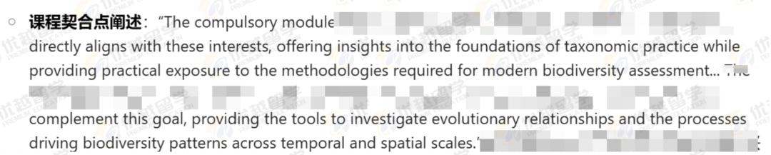 緊接著,我們在文書中展現對 IC 帝國理工該專業課程有深入了解,能精準指出課程與自身研究興趣和目標的契合之處。表明L同學在分類學實踐基礎、物種進化關系研究、生態數據科學分析等方面的需求與專業課程設置的高度匹配,讓招生官相信其入學后能充分利用課程資源,在專業上有所建樹。